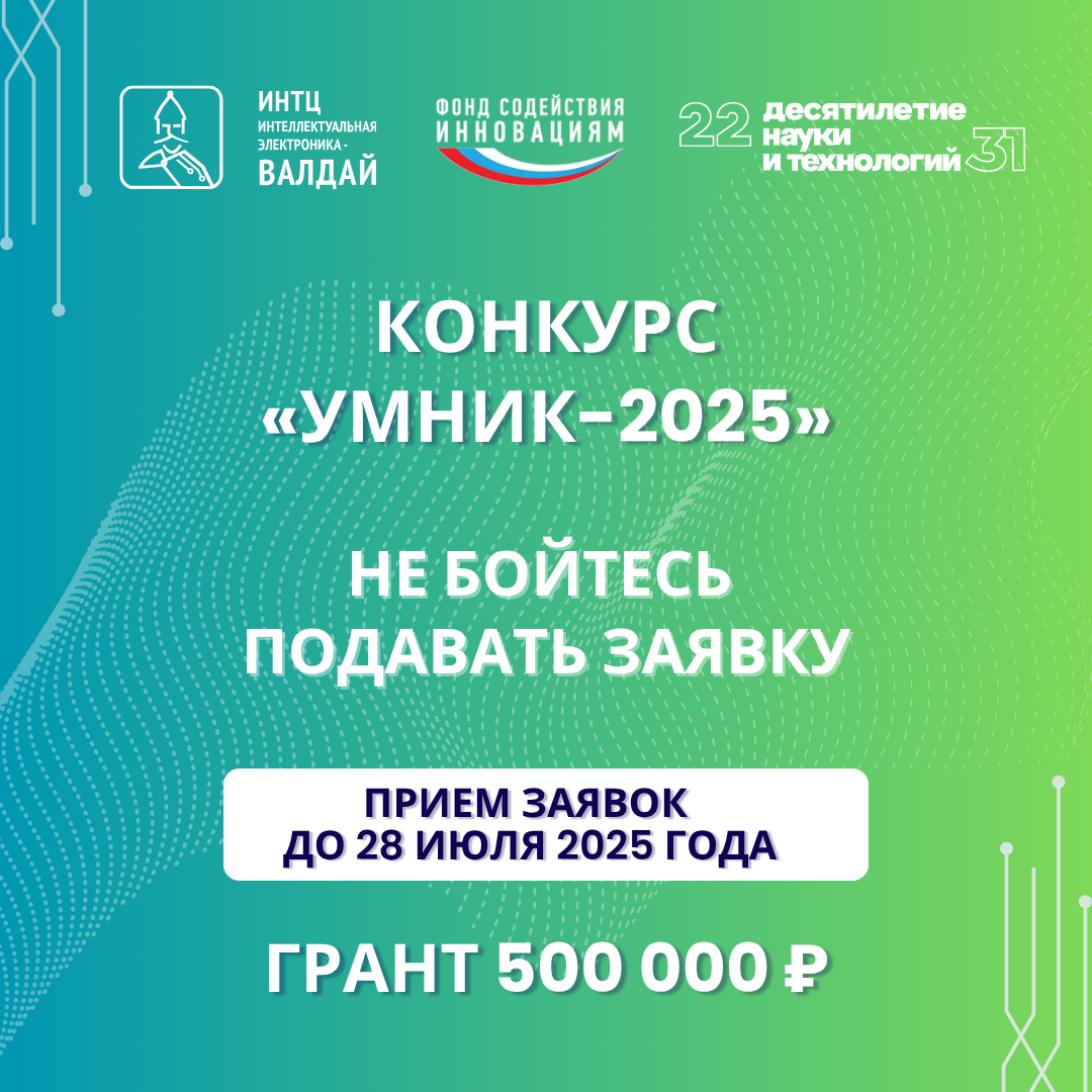 Прием заявок на «УМНИК-2025» на сайте online.fasie.ru/m/ до 28 июля 2025 года.