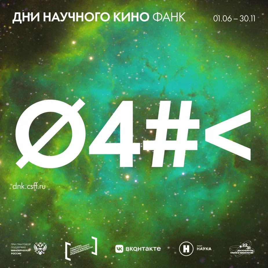 Дни научного кино ФАНК проходят при грантовой поддержке Министерства науки и высшего образования РФ и в рамках Десятилетия науки и технологий, при информационной поддержке ВКонтакте.